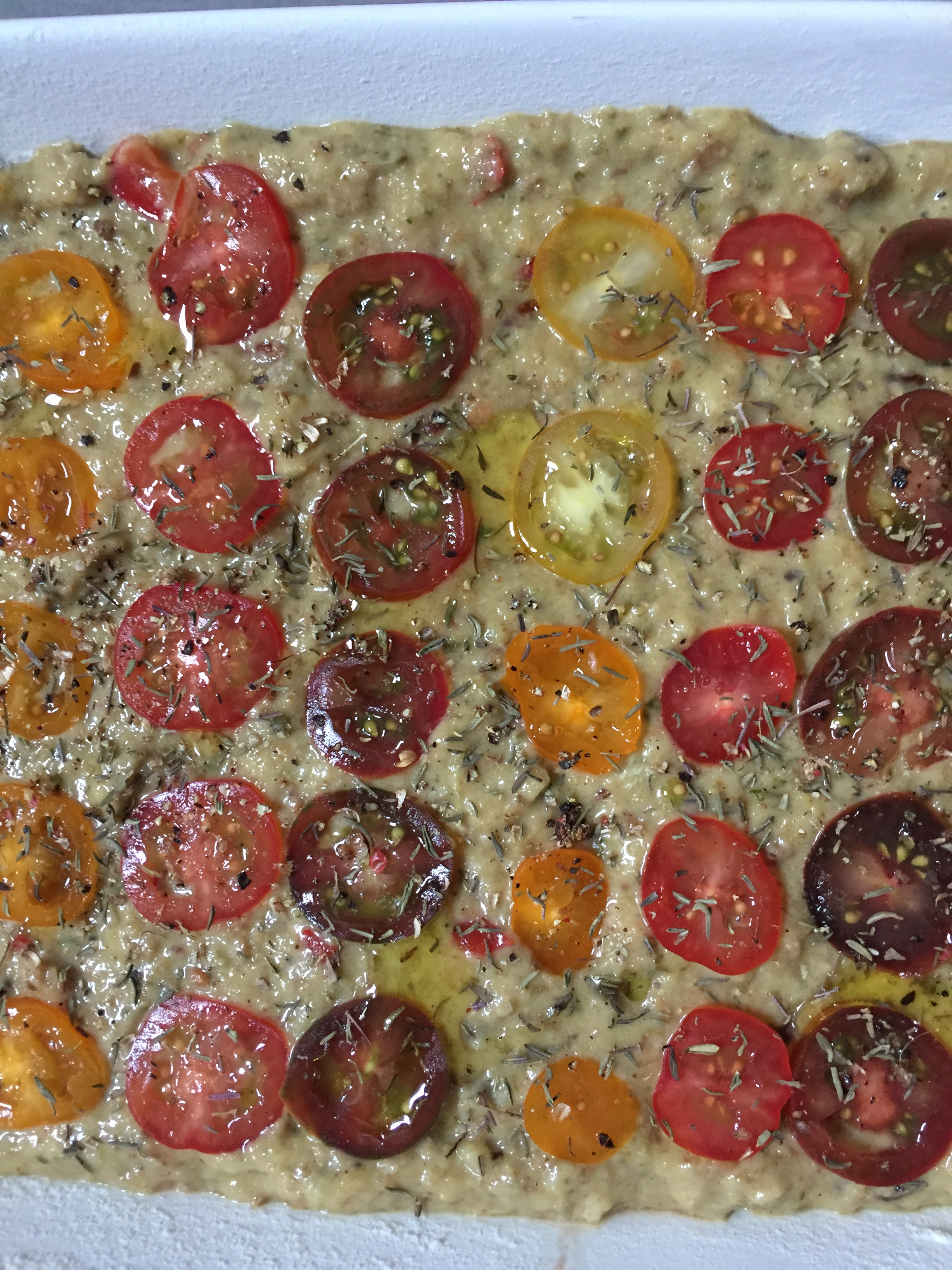 Tomato Pesto Bread Pudding Ready for the Oven