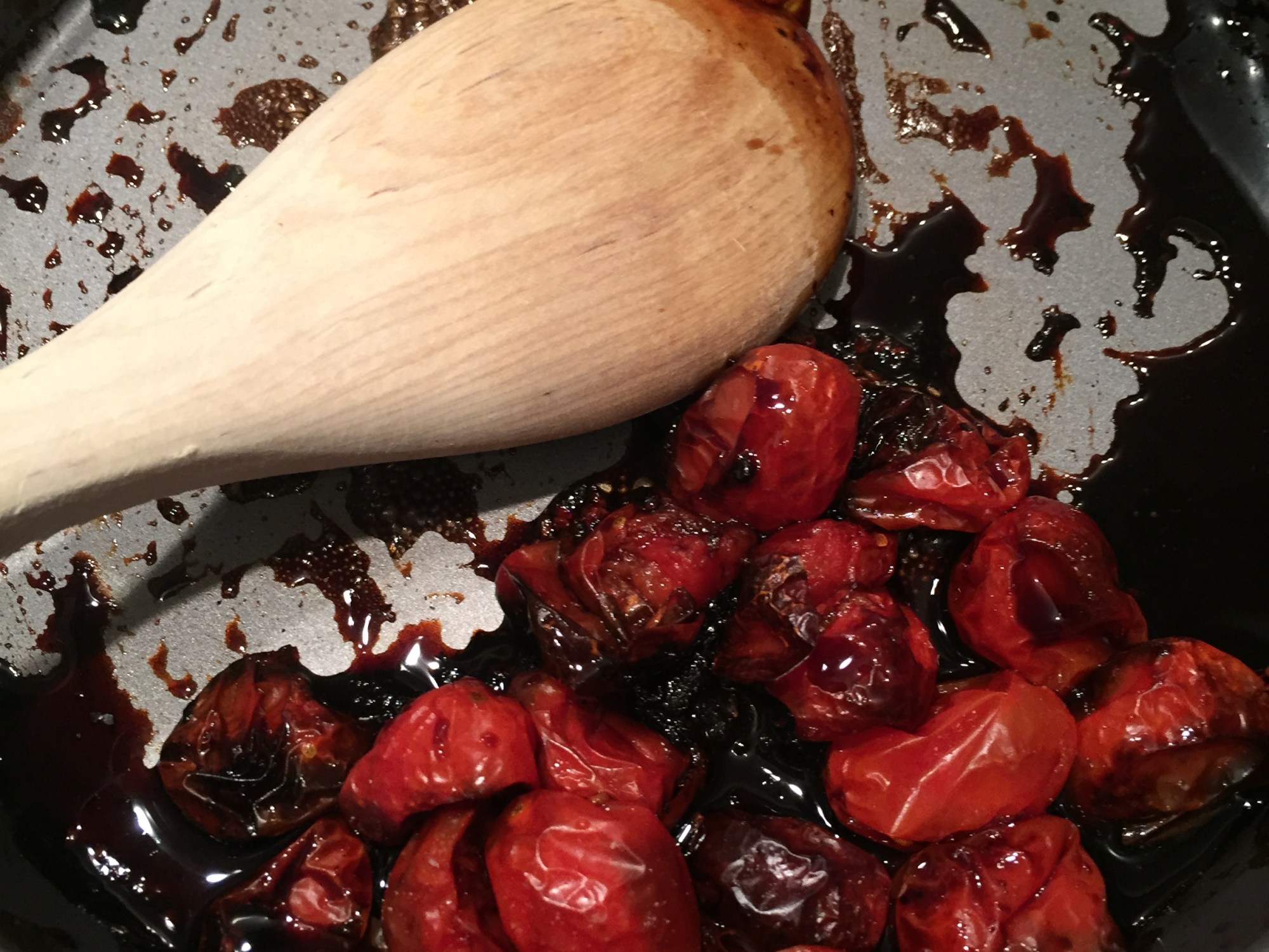- Place over a medium-high flame for just a minute or two, stirring with a wooden spoon to scrape all the charred tomato from the pan. Gets the flavour AND saves the washing up.