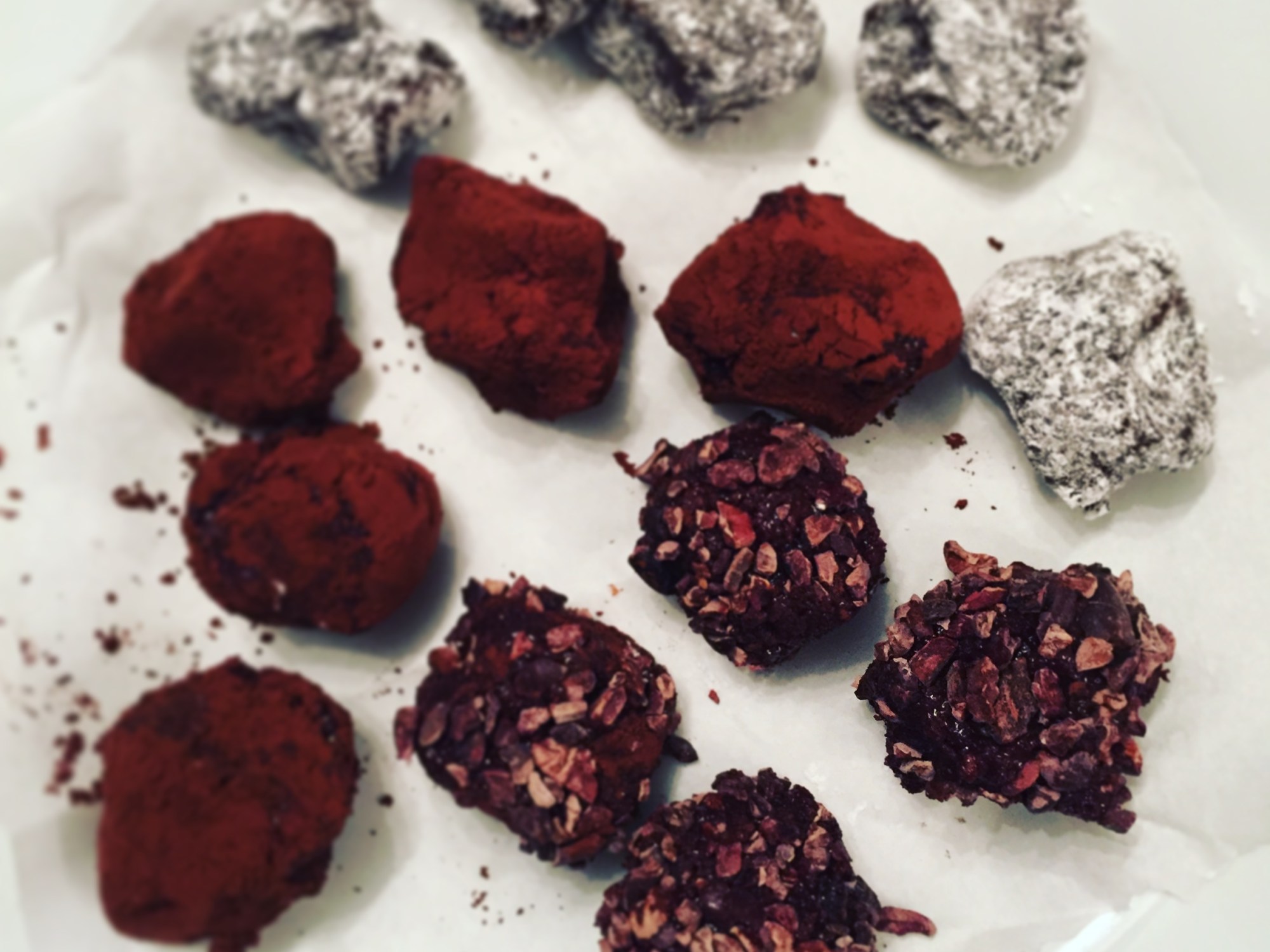 - Taking a teaspoon-ish of mixture at a time, shape lightly into a ball in your hands. Work quickly and don’t worry too much about the exact shape – it’s all part of the rustic charm and you’ll be there for hours trying to make neat shapes while chocolate just sticks to more and more of your hands.