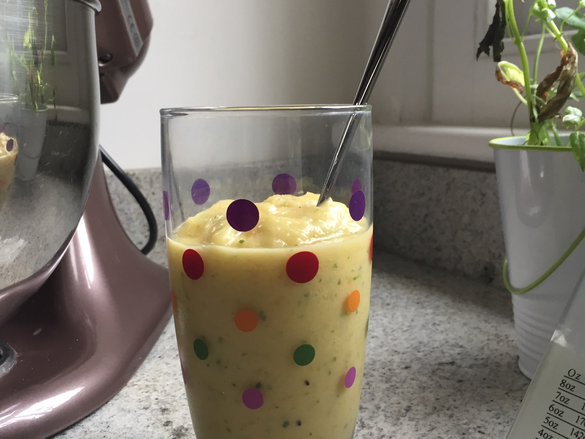 Best eaten on the day as otherwise it turns into a bit of a solid lump. You could add a capful or two of your favourite spirit for a more adult flavour – with the added bonus of stopping it freezing too hard. Remember that flavours, particularly sugars, are more subdued when frozen so you may want to ramp up the ginger/syrup/mint proportions for this option.